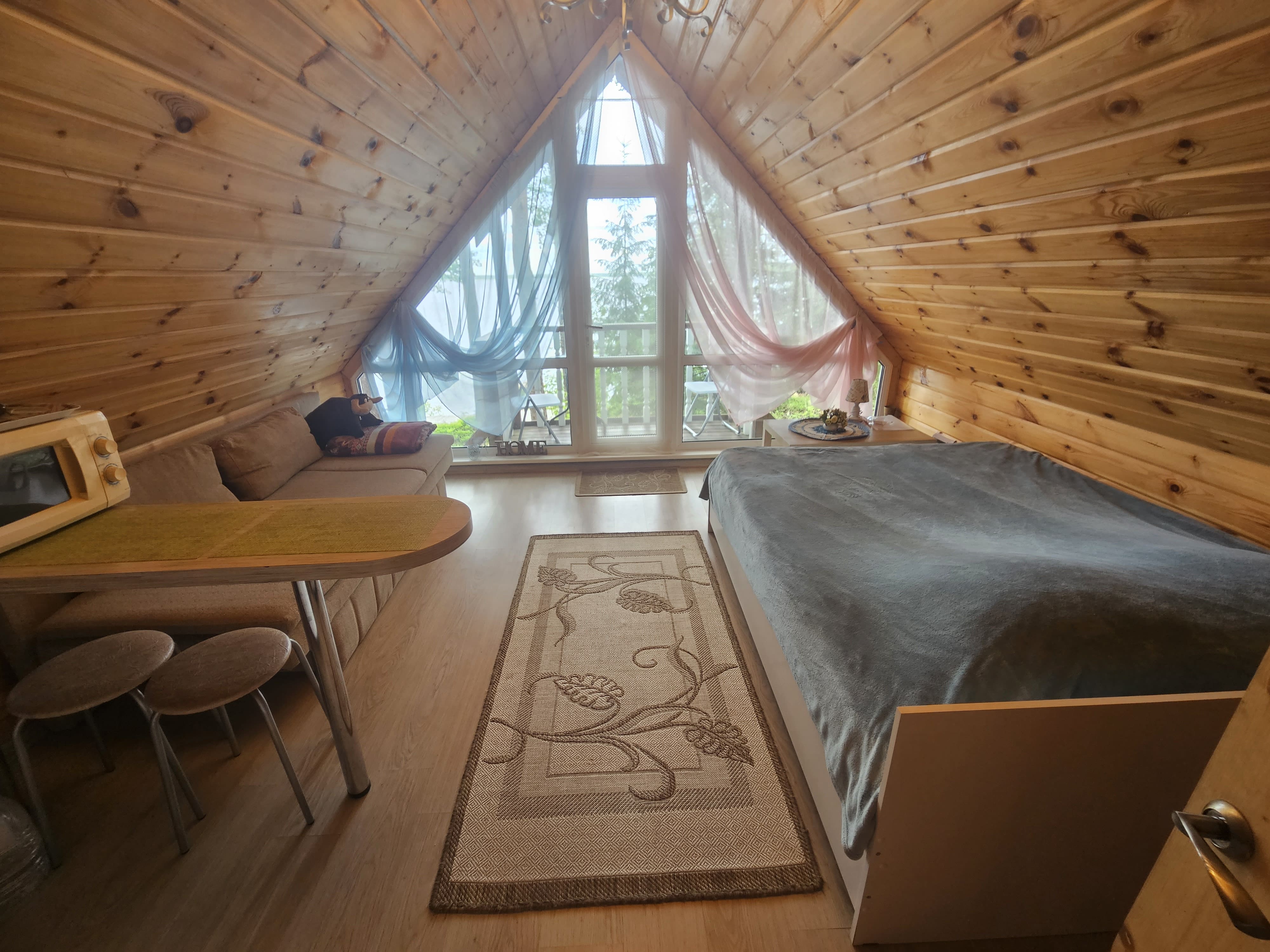 Вы можете арендовать домик полностью или только второй этаж (без доступа к бане). Минимальный срок аренды — 2 суток.
